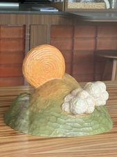 Inspired by life in the New Territories’ countryside, the artist creates two large mountain sculptures symbolizing the cycle of day and night. Flanking a bench, intricate carvings and vibrant colors illustrate the rural landscapes of the four seasons, alongside the iconic kapok tree in its seasonal transformations, inviting viewers to appreciate the simple, natural beauty of rustic life.